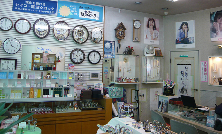 時計・メガネ・宝飾を中心に補聴器や化粧品を取り扱っております。